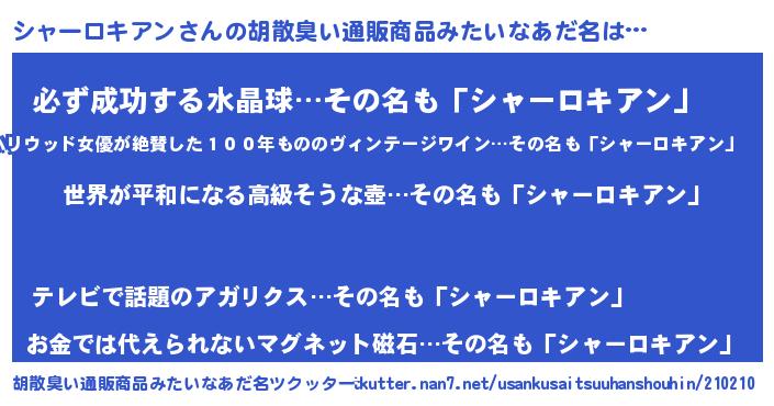 | 意味不明あだ名 | 『シャーロキアンフォーエバー』 |