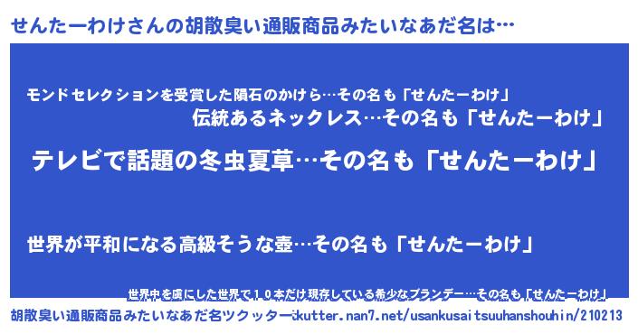 | ヘコむあだ名 | 『せんぷりん』『豆乳』『せんにゅー』 |