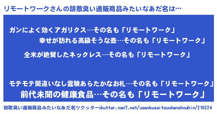| 意味不明あだ名 | 『とにかく怪しいリモートワーク』 |