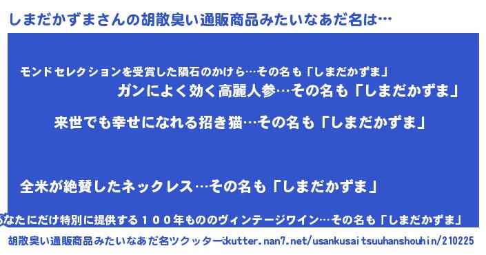 | ヘコむあだ名 | 『しまだかずま(笑)』『しまを』 |