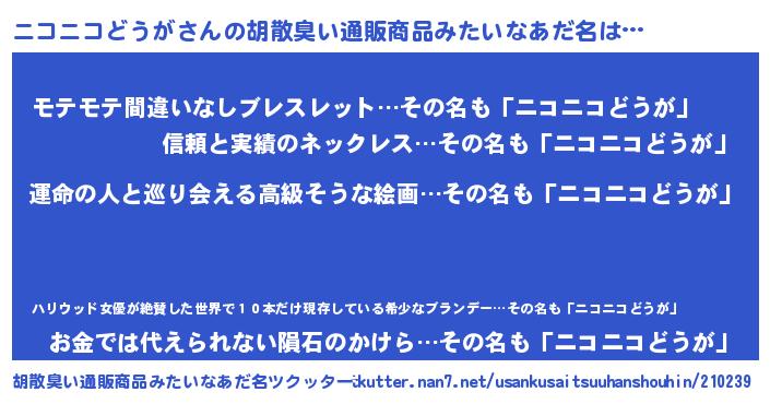 | 意味不明あだ名 | 『ニコニコどうがフォーエバー』 |