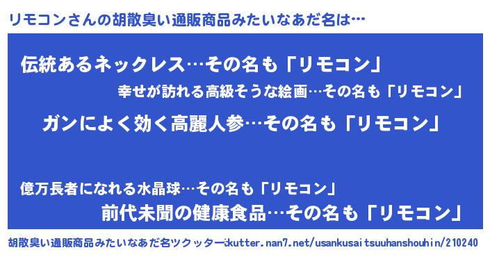 | 意味不明あだ名 | 『自称リモコン』『永久保存リモコン』 |