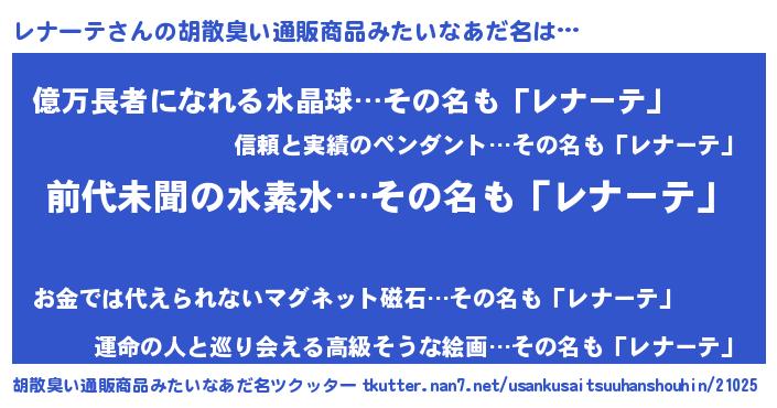 | 意味不明あだ名 | 『永久保存レナーテ』『ペロリンレナーテ』 |