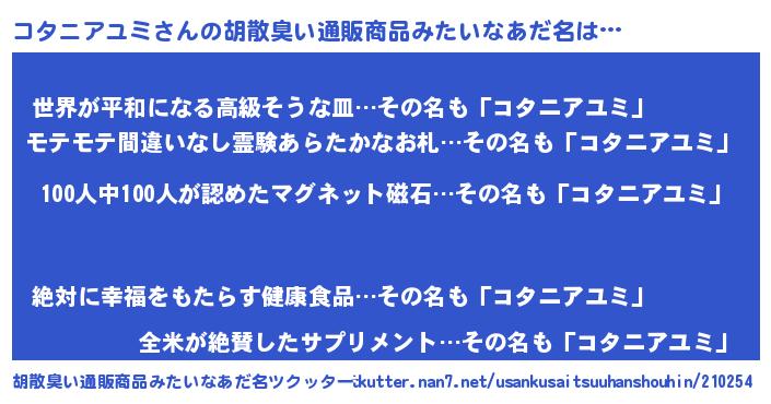 | 欧米人風あだ名 | 『ダニエルコタニアユミ』 |