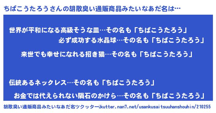 | 意味不明あだ名 | 『永久保存ちばこうたろう』 |
