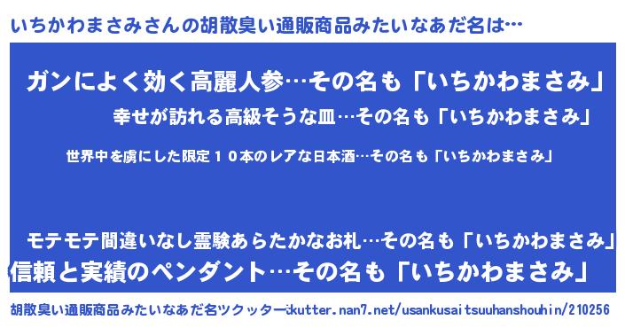 | 意味不明あだ名 | 『住所不定無職いちかわまさみ(65歳)』 |