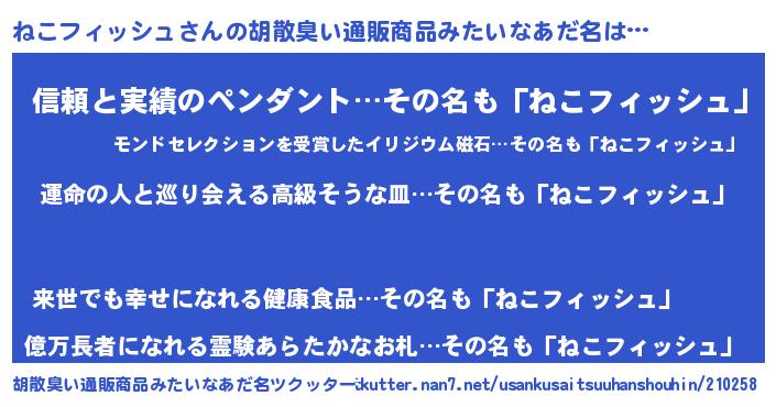 | 欧米人風あだ名 | 『ねこフィッシュクリステル』 |