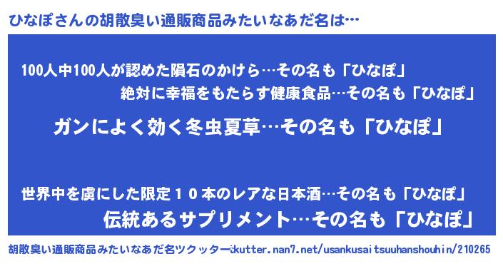 | ヒーロー風カッコイイあだ名 | 『超時空戦士ヒナポ』『正義の使者ひなぽ』 |