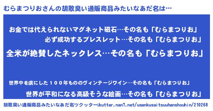 | 意味不明あだ名 | 『とにかく怪しいむらまつりお』 |