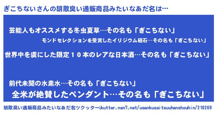 | 意味不明あだ名 | 『住所不定無職ぎこちない(50歳)』 |