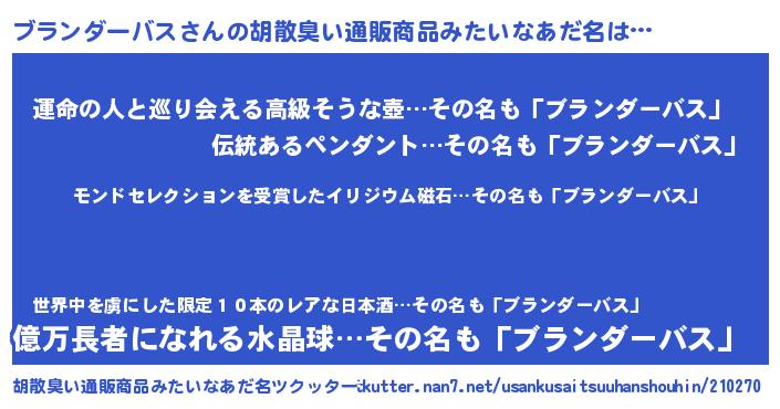 | 伝説のあだ名 | 『救世主となる占い師ブランダーバス』 |