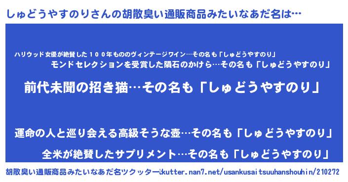 しゅどうやすのりさんの胡散臭い通販商品みたいなあだ名をツクッター!