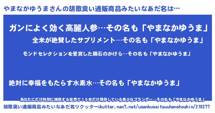 | ヘコむあだ名 | 『やまっちょ』『やまなかゆうま(小並感)』 |