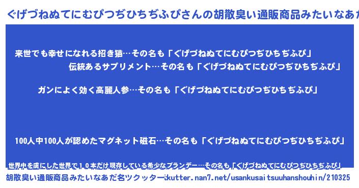| 意味不明あだ名 | 『自称ぐげづねぬてにむぴつぢひちぢふぴ』 |