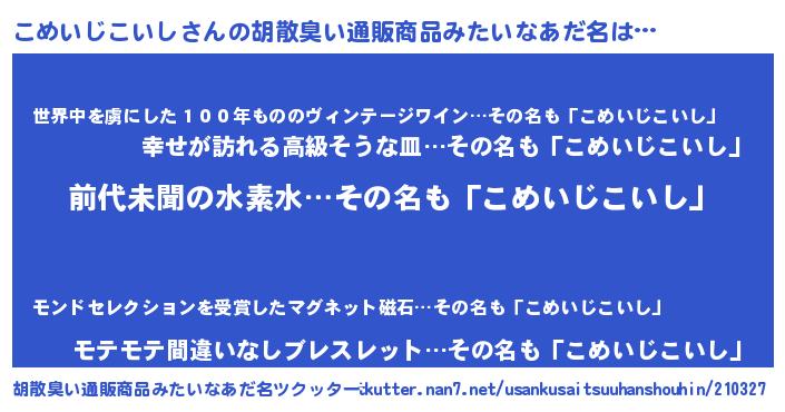 | 意味不明あだ名 | 『永久保存こめいじこいし』 |