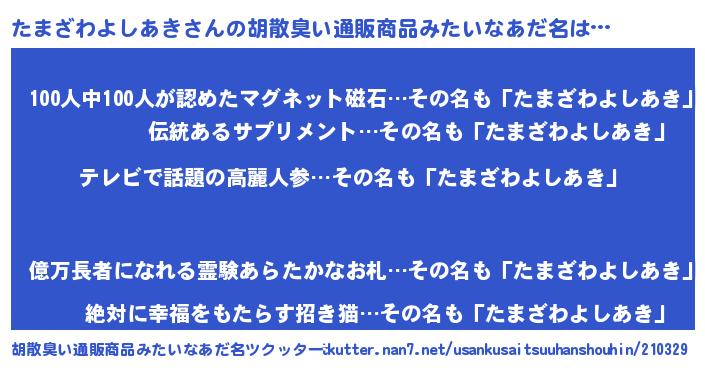 | 意味不明あだ名 | 『自称たまざわよしあき』 |