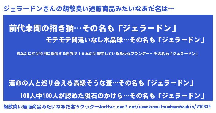 | 意味不明あだ名 | 『住所不定無職ジェラードン(91歳)』 |