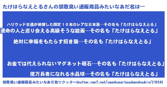 | 男性向けラノベタイトル風あだ名 | 『緋弾のタケハラナエトル』 |