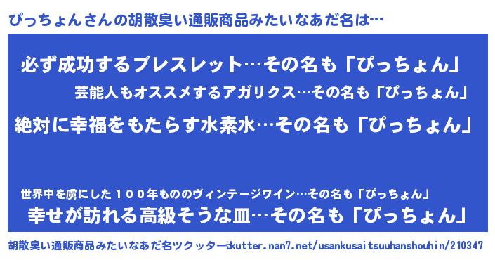 | 意味不明あだ名 | 『永久保存ぴっちょん』『自称ぴっちょん』 |
