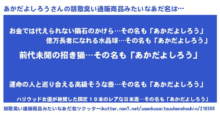 | 意味不明あだ名 | 『永久保存あかだよしろう』 |