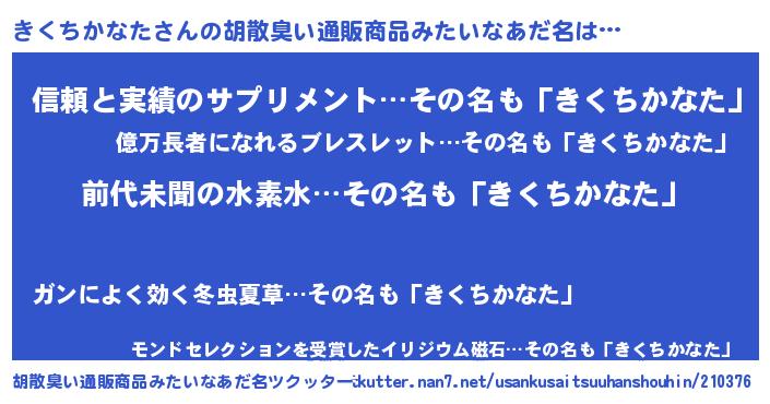| ヘコむあだ名 | 『きくちかなた(苦笑)』『きくを』 |