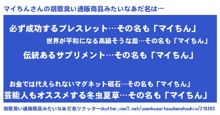 | ヘコむあだ名 | 『マイお』『マイにー』『酢こんぶ』 |
