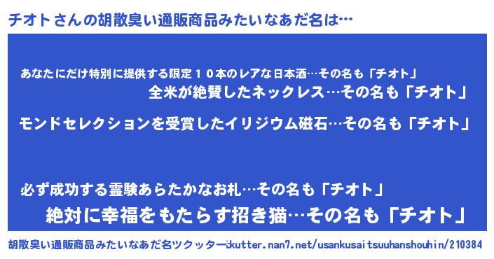 | ヘコむあだ名 | 『チオト(笑)』『チオっ子』 |