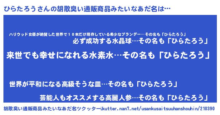 | 意味不明あだ名 | 『永久保存ひらたろう』『自称ひらたろう』 |