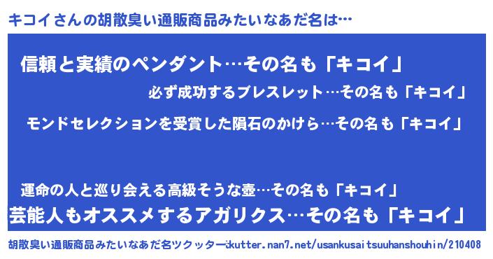 | 意味不明あだ名 | 『ヨモギ科キコイ属』『自称キコイ』 |