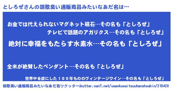 | 意味不明あだ名 | 『永久保存としろぜ』『自称としろぜ』 |