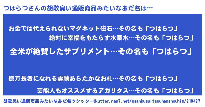 | ヘコむあだ名 | 『つはを』『つはらつ(笑)』『牛乳』 |
