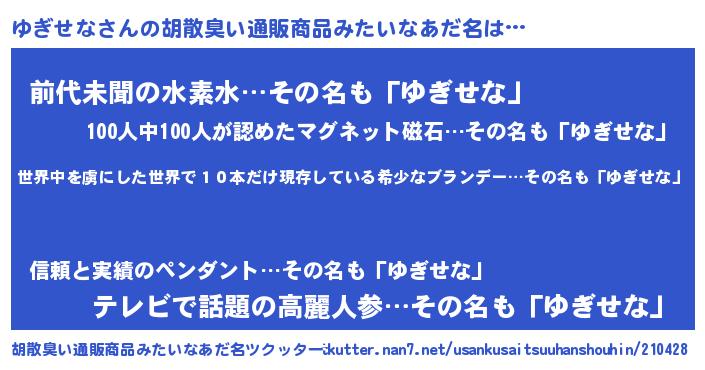 | 欧米人風あだ名 | 『ダレノガレゆぎせな』 |