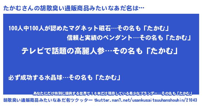 | 意味不明あだ名 | 『自称たかむ』『眠気覚ましガムたかむ味』 |