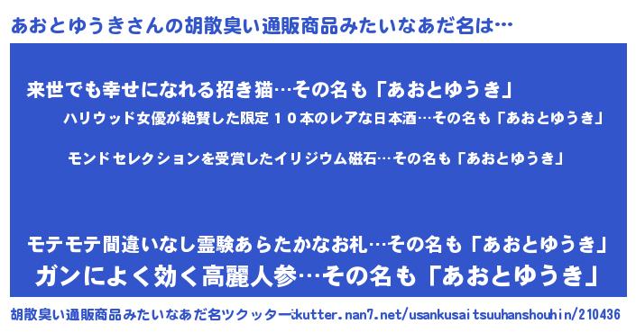 | 伝説のあだ名 | 『救世主となる占い師あおとゆうき』 |