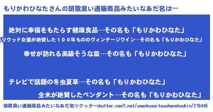 | ファンタジー風あだ名 | 『エターナルモリカワヒナター』 |