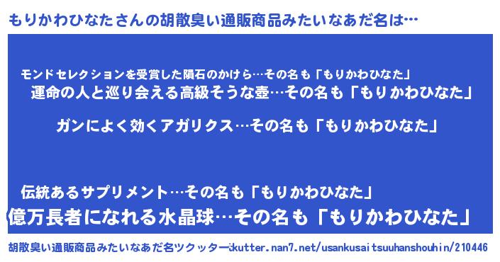 | 意味不明あだ名 | 『自称もりかわひなた』 |