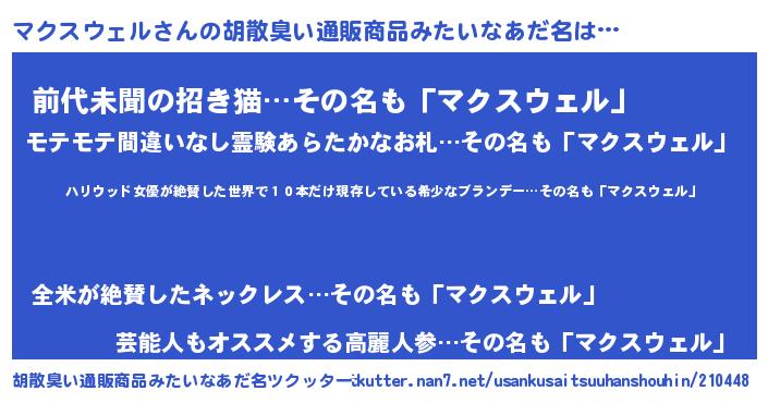 | 男性向けラノベタイトル風あだ名 | 『はたらくマクスウェルさま!』 |