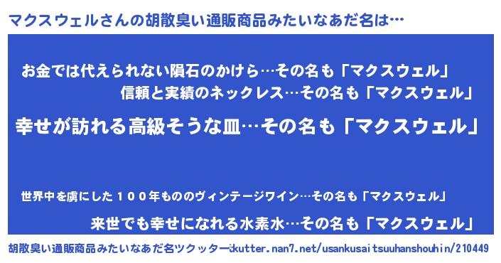 | 意味不明あだ名 | 『マクスウェルフォーエバー』 |
