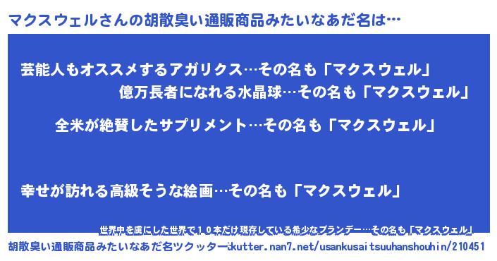 | 女子向けラノベタイトル風あだ名 | 『マクスウェル様がみてる』 |