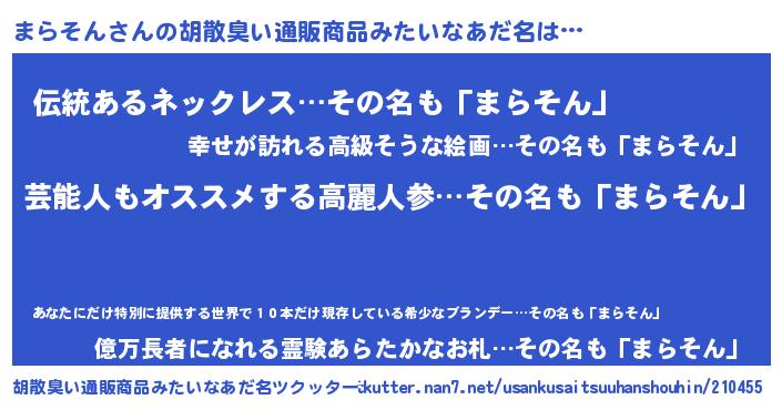 | 意味不明あだ名 | 『ニラ科まらそん属』『自称まらそん』 |