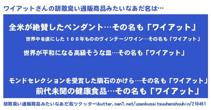 ワイアットさんの胡散臭い通販商品みたいなあだ名をツクッター!