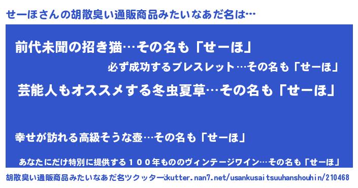 | ヘコむあだ名 | 『せーほ(苦笑)』『せーふぇ~』 |