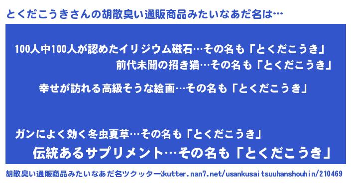 | 意味不明あだ名 | 『とくだこうきフォーエバー』 |