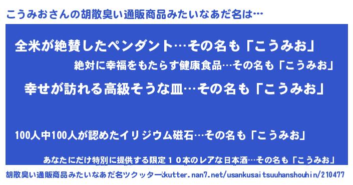| 欧米人風あだ名 | 『こうみおクリステル』 |