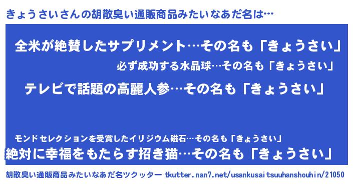 | ヒーロー風カッコイイあだ名 | 『ウルトラ戦士キョウサイ』 |