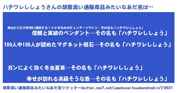 | ヒーロー風カッコイイあだ名 | 『友情の使者ハチワレししょう』 |