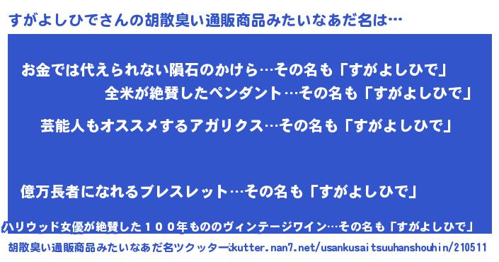 | 意味不明あだ名 | 『自称すがよしひで』 |