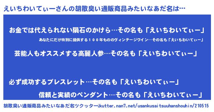 | 意味不明あだ名 | 『自称えいちわいてぃー』 |