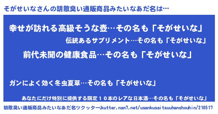 | ピコ太郎風あだ名 | 『ピコソ郎』『ピソ四郎』『ソガ六郎』 |