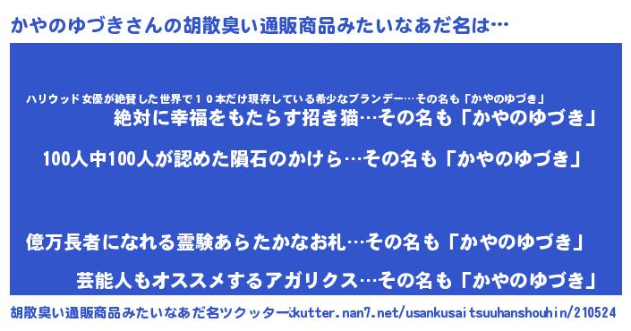 | ヘコむあだ名 | 『かやのゆづき(震え声)』『かやにゅー』 |